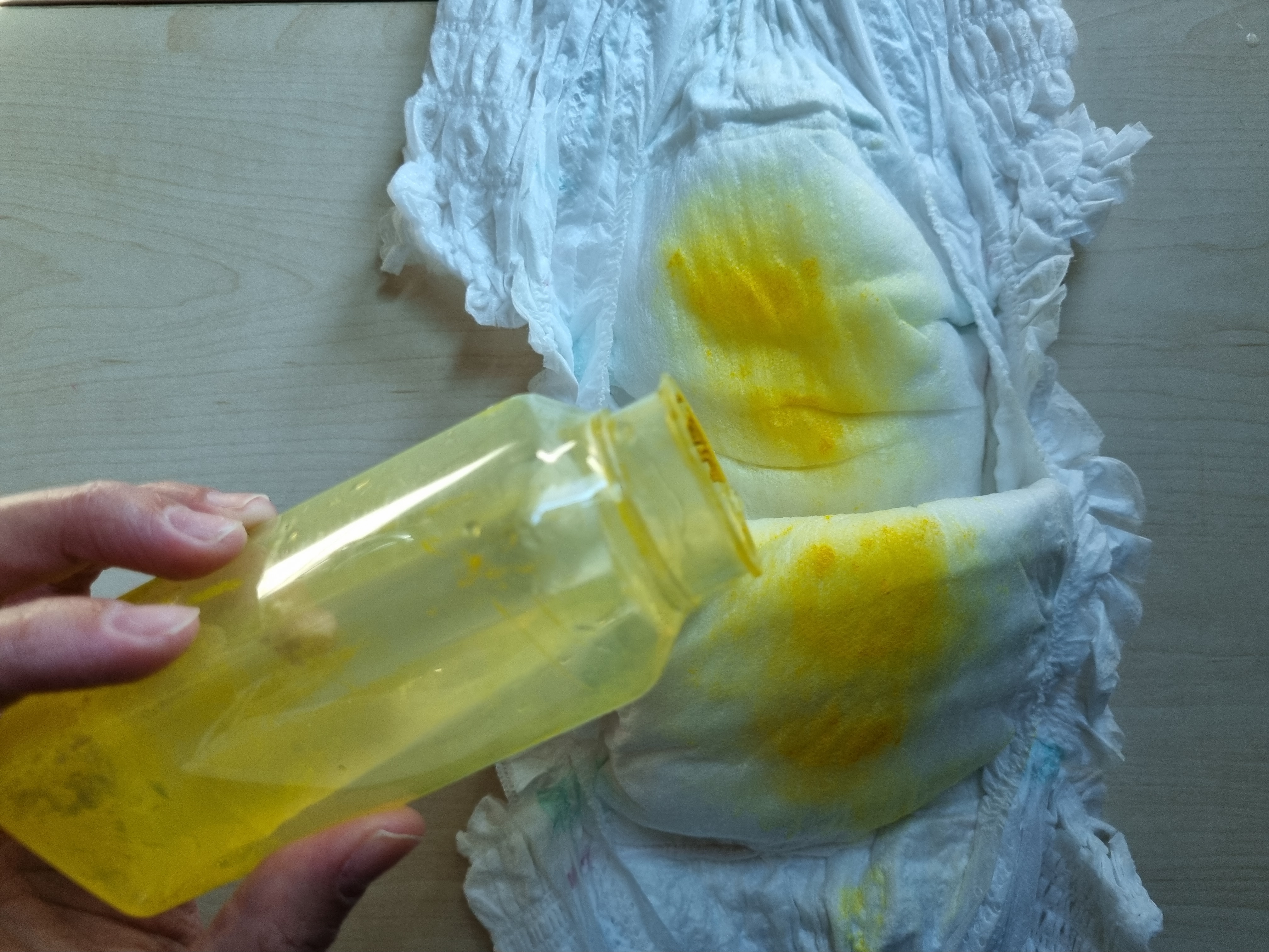저는 소변을 표현하기 위해 노란 물감을 섞었는데요, 노란 물감이 없다면 다른 색도 좋아요!