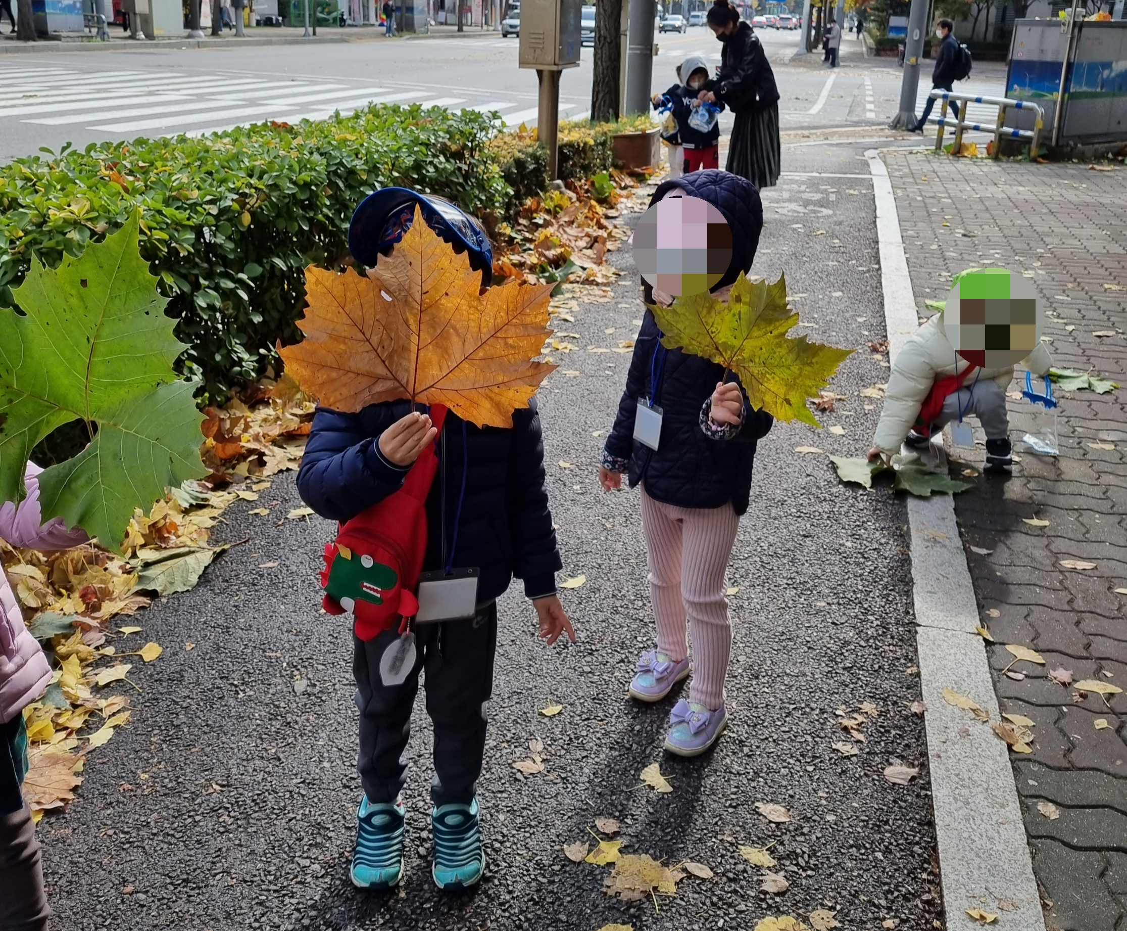 1. 아이와 바닥에 떨어진 예쁜 낙엽을 주워옵니다.